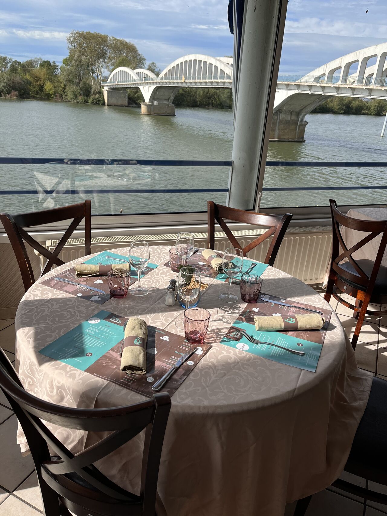 Nos baies vitrées s'ouvrent avec une vue directe sur la Saône, et nous disposons d'une terrasse à l'ombre d'un platane sur les bords de Saône.