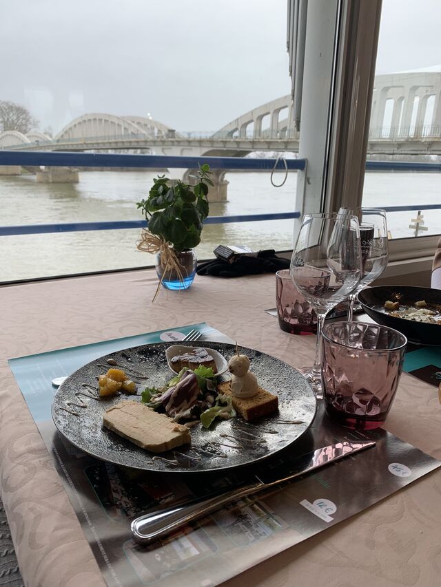Adossé au pont de Thoissey, nous vous proposons une cuisine fraiche, gourmande et locale, basée sur des spécialités comme la friture d'ablettes (en saison)ou les grenouilles fraiches.