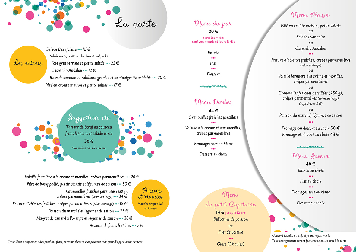 Adossé au pont de Thoissey, nous vous proposons une cuisine fraiche, gourmande et locale, basée sur des spécialités comme la friture d'ablettes (en saison)ou les grenouilles fraiches.